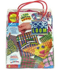 Alex Loop n Loom lets you get loopy. This is a traditional craft with a bright new twist. Create bold patterns with awesome colors to make purses, head bands, belts and, of course, pot holders. Enough loops to make 5 Pot holders. It comes with lots of loops, a 7.25” x 7.25” metal loom, buttons crochet hook yarn, large needle and easy Instructions.